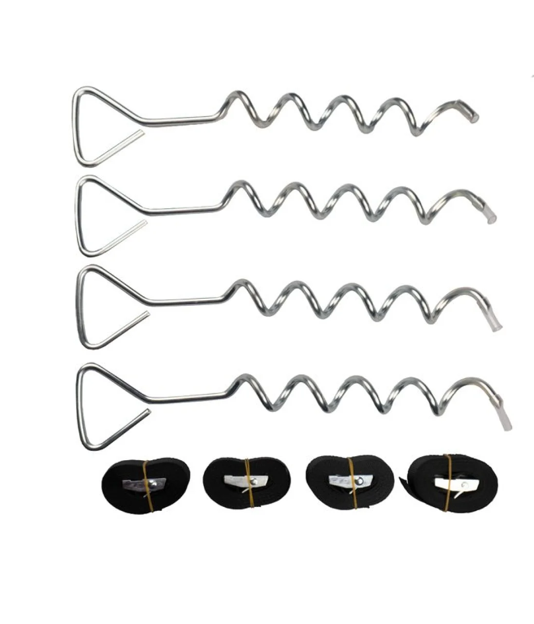 - Komplett-Set aus 4 Bodenankern und 4 Spanngurten