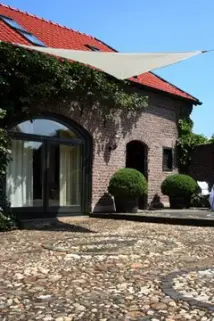 Wird das Sonnensegel wie in einem Atrium gespannt, können auch seitliche Wände eine Möglichkeit zur Verspannung des Dreiecksegels bieten - auch ein zwischen Wänden oder Bäumen quer gespanntes Seil kann als Fixpunkt für die Ausspannung eines Dreiecksegels dienen.