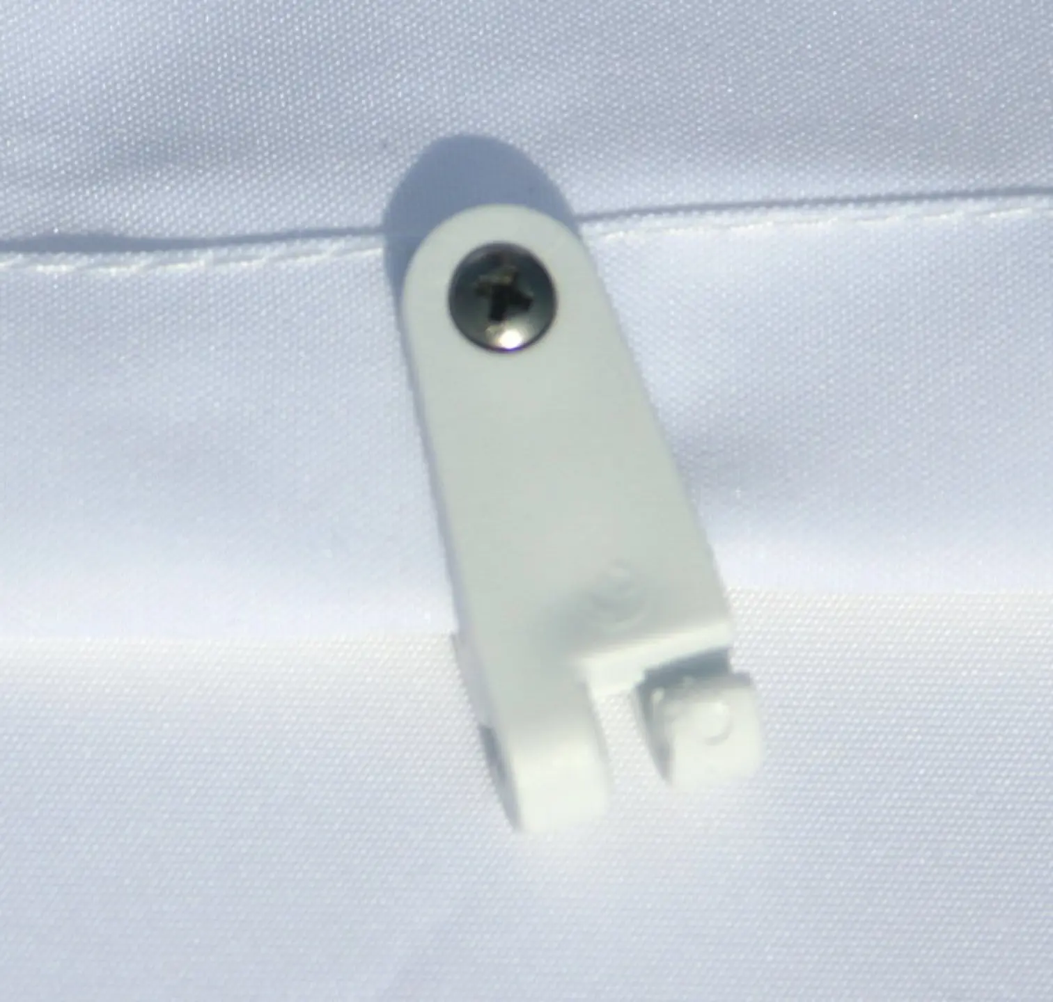 Laufhaken für alle Sonnensegel in Seilspanntechnik - 20 Stück - elfenbein - mit kleinen Edelstahlschrauben zum Anklemmen an das Faltsonnensegel