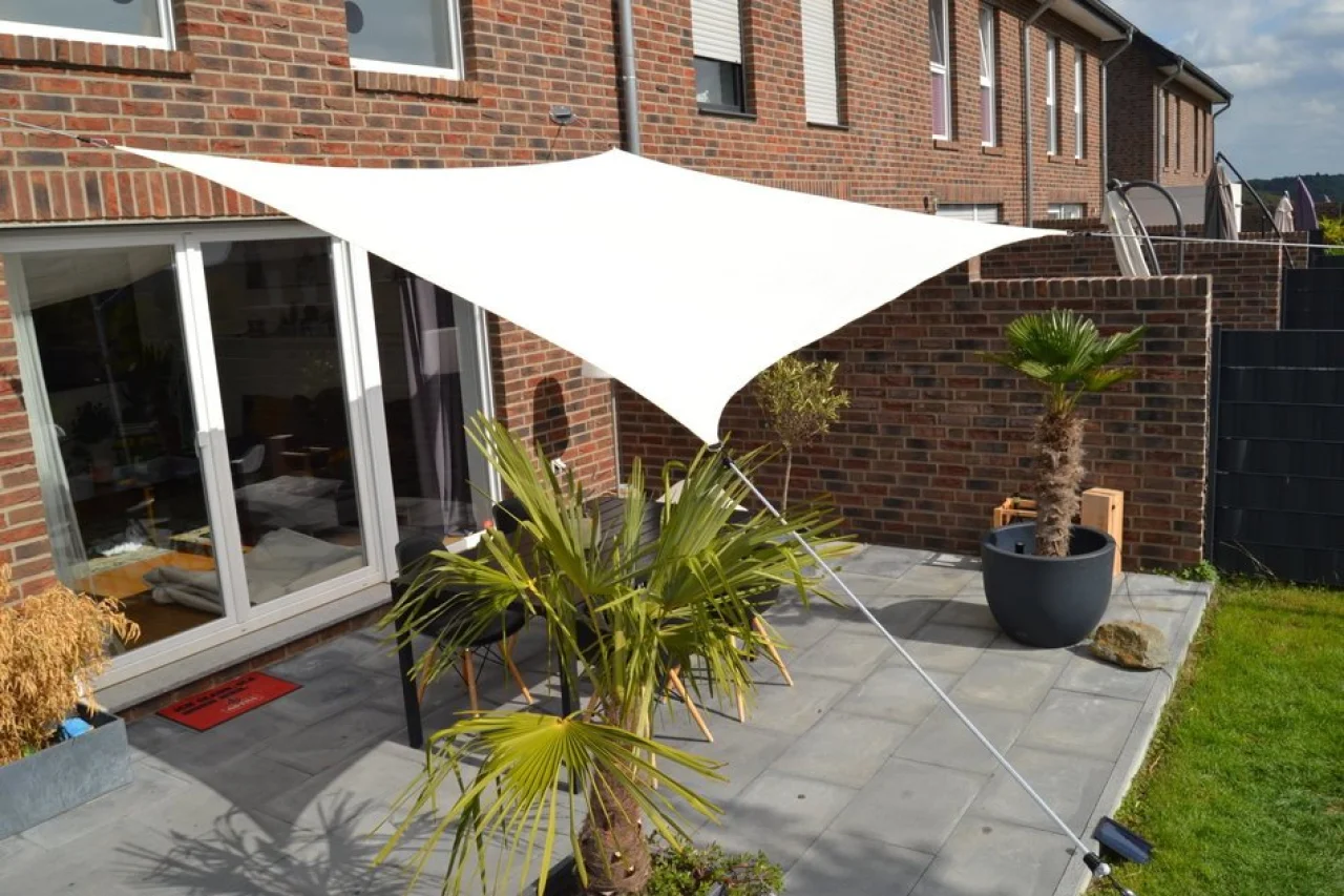 Vorteil dieses Schattierungssegels ist die Möglichkeit es horizontal aufzuhängen