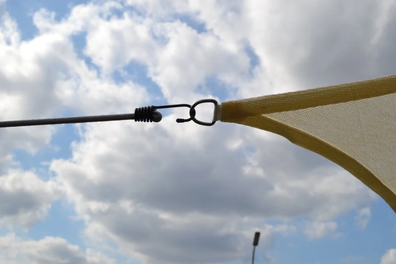Die Spanngurte halten das Sonnenschutzsegel straff gespannt und können harte Windkräfte gut aufnehmen.