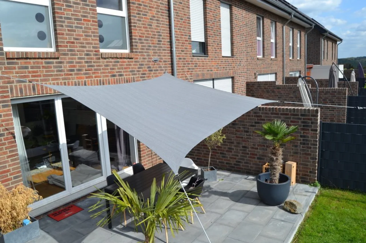 Das HDPE-Vierecksegel ist Wasser durchlässig und deshalb nur ein Sonnenschutz.