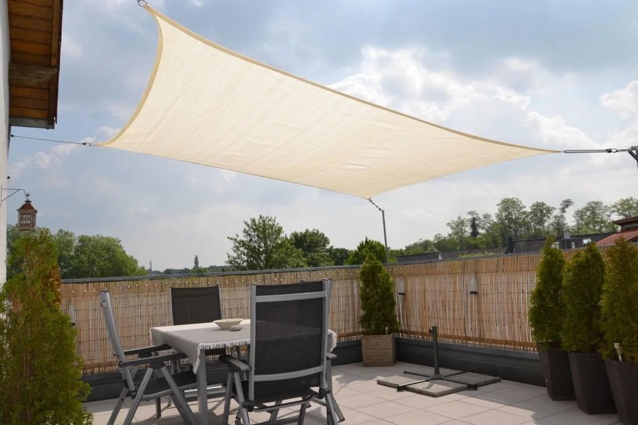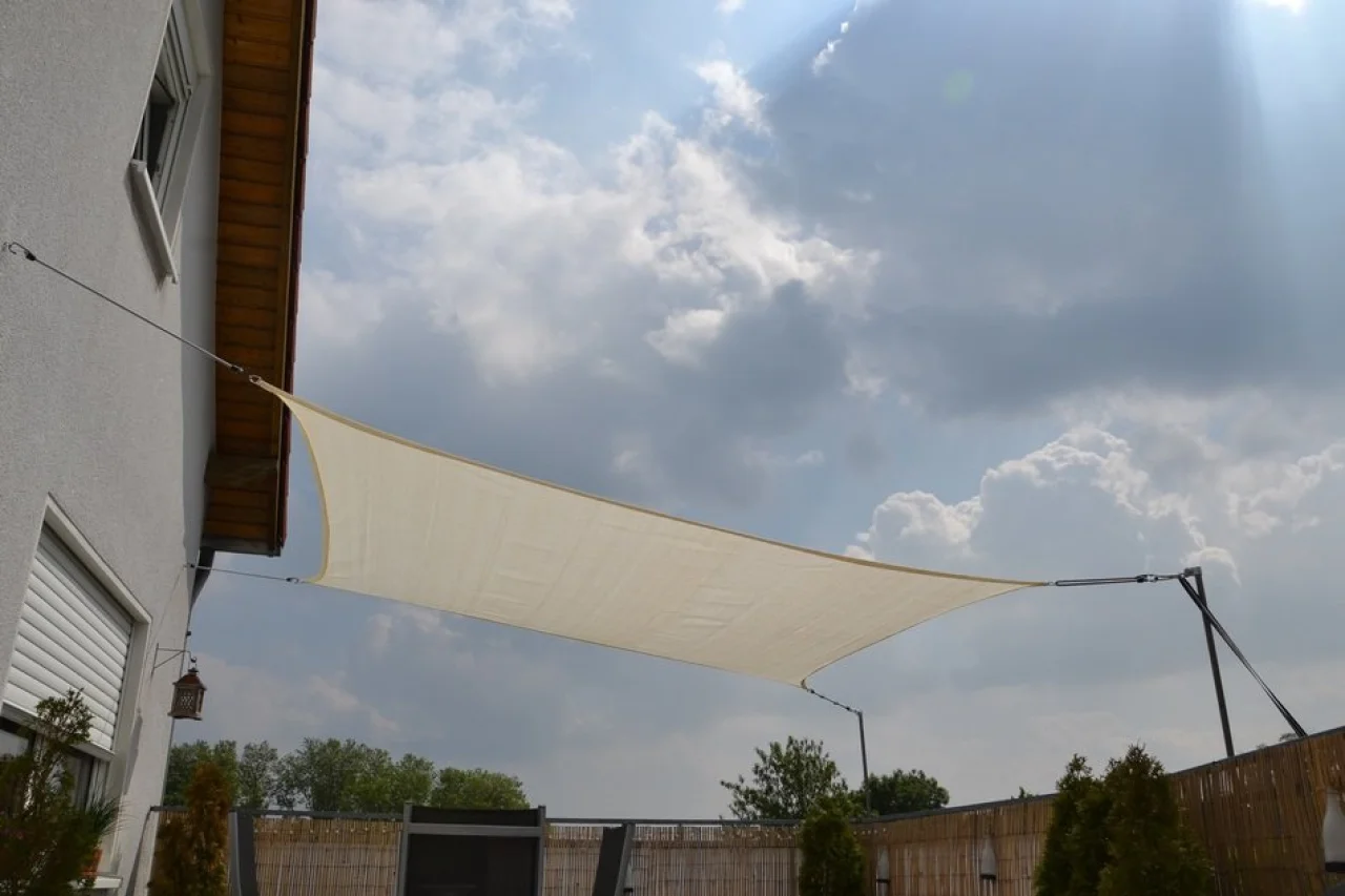 Vorteil dieses Schattierungssegels ist die Möglichkeit es horizontal aufzuhängen