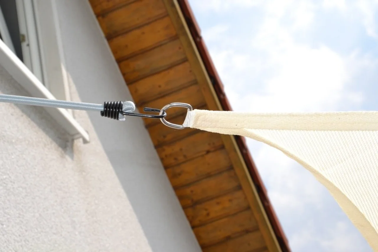Die Spanngurte halten das Sonnenschutzsegel straff gespannt und können harte Windkräfte gut aufnehmen.
