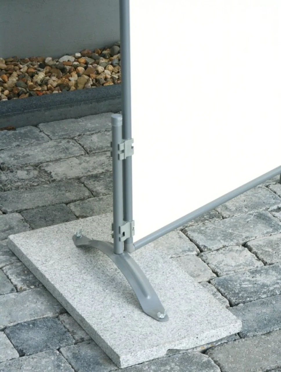 - Für die windfeste Wandmontage an Balkonen, Dachterrassen und Terrassen sorgt der Wand-Clip. Das freie Ende wird unterstützt und positioniert durch ein Standrohr.