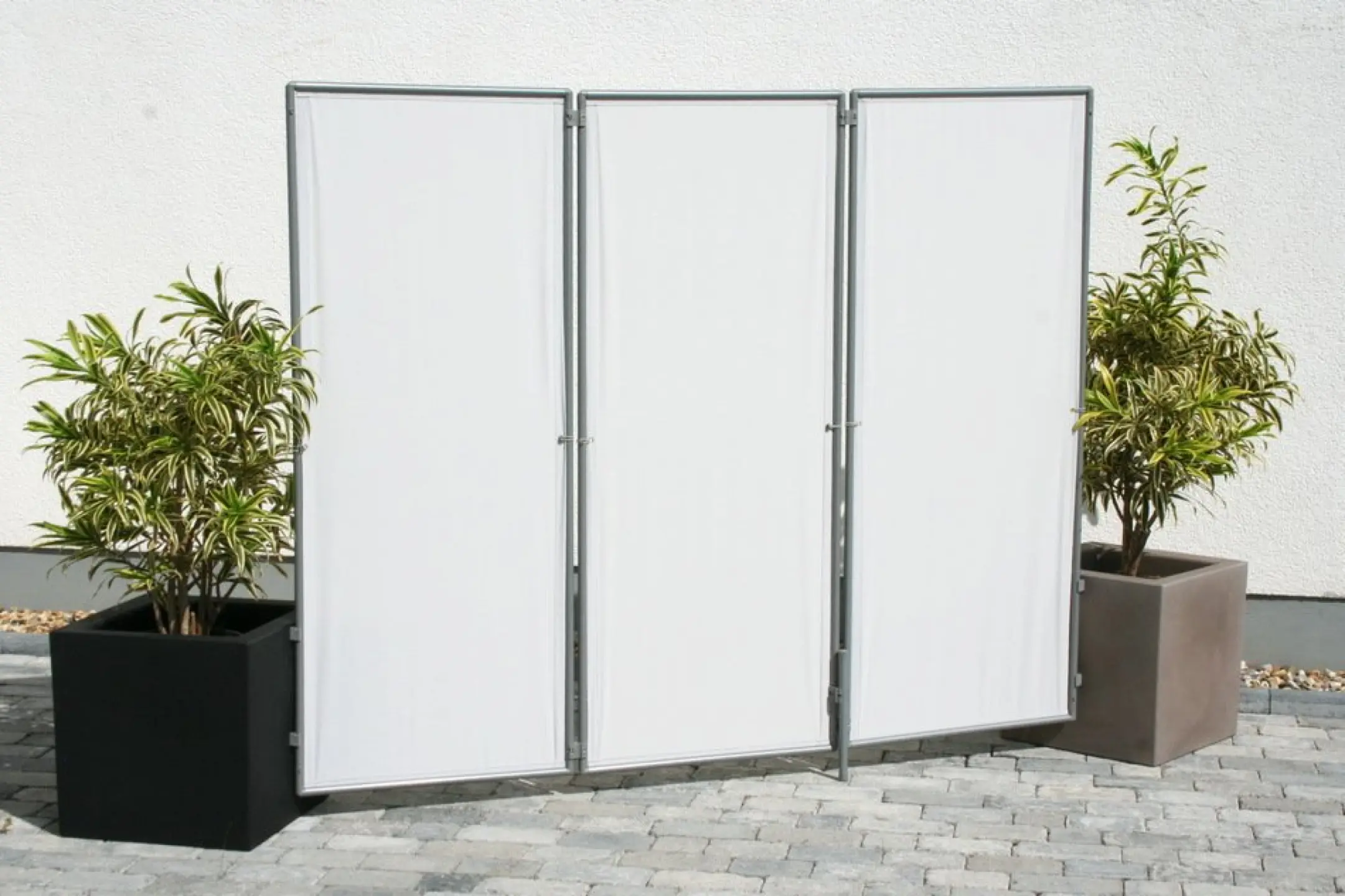 Steckbarer Sichtschutz Paravent, 3er Rahmen-Element, Farbe der Bespannung uni hell silbergrau, schwer entflammbar