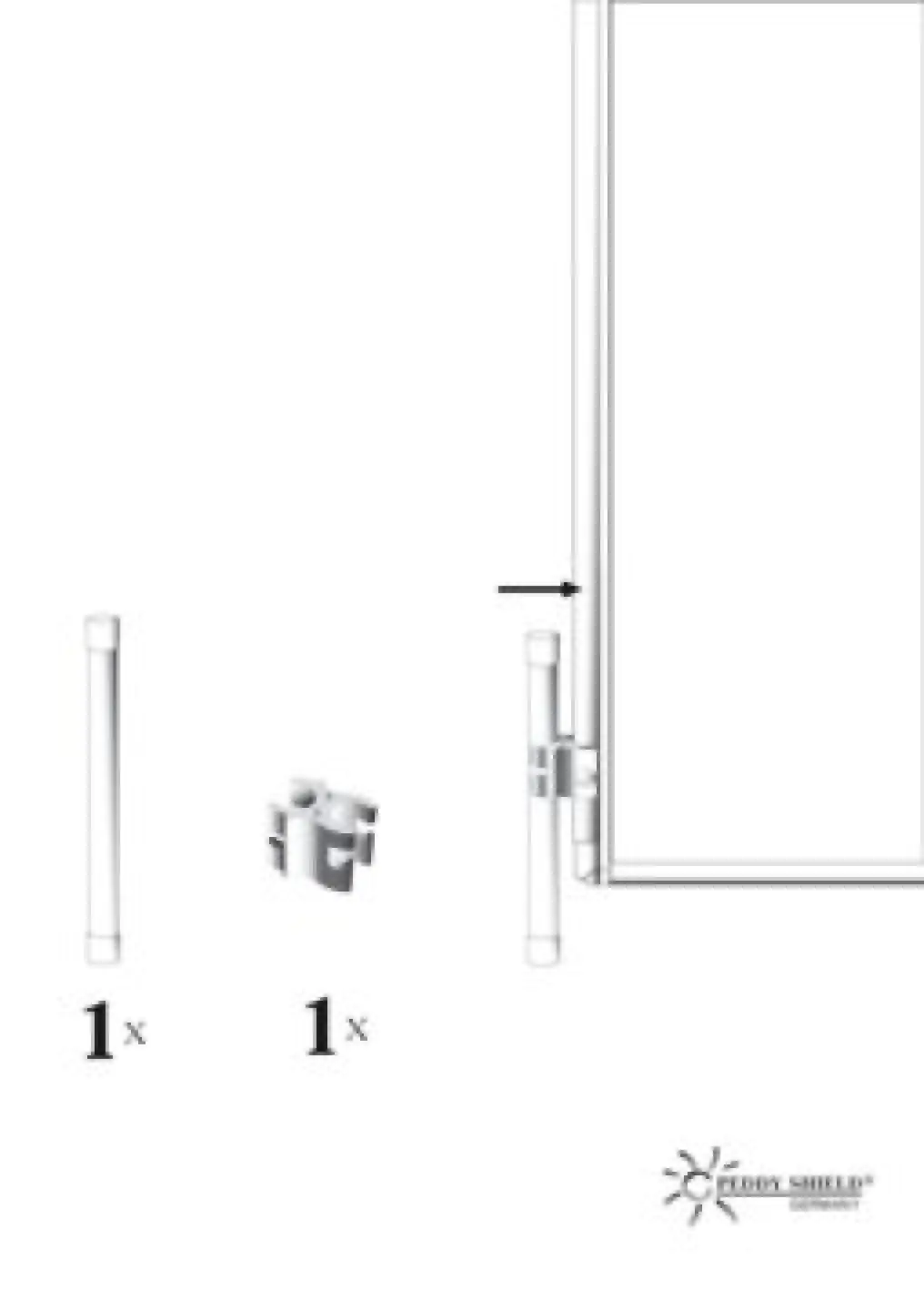 - 1x Verbindungs-Clip zum Anstecken an das freie Rahmende oder zur Unterstützung weit gesteckter Rahmen