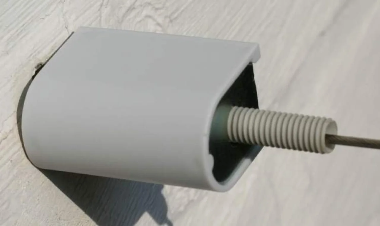 - mit 4x Abdeckkapen - hell grau. - 14 m Edelstahlseil hochwertig mit besonders laufleichter Oberlfläche.