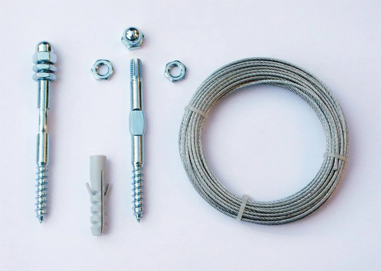 - 10 m hochwertiges Stahlseil aus 7 x 7 feinsten Stahldrähten - unglaublich flelxibel und weich - eingelegt in den patentierten Schlitz im Kopf der Doppelschraube