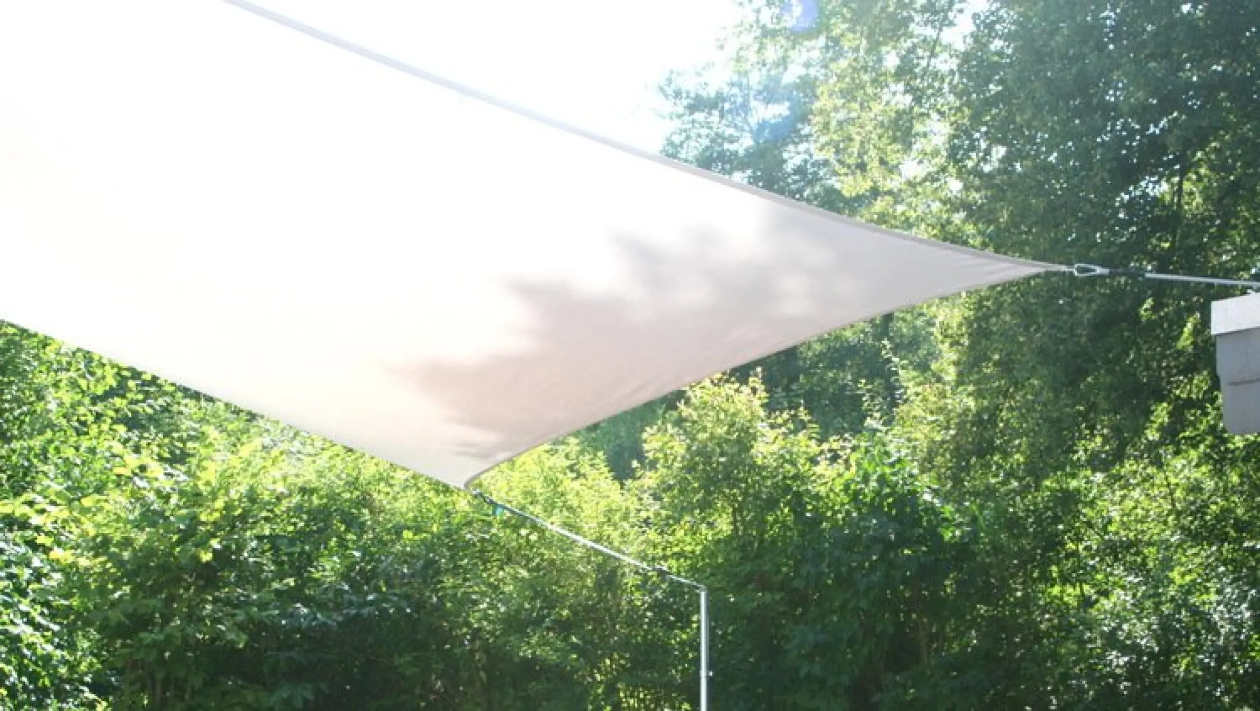 - Für ein Wochenende mit einer Grillparty und dem Vierecksonnensegel konkav 3 x 4 m als Regenchutz, wenn Petrus nicht richtig mitspielt, haben Sie mit einer geteilten leichten Metallstange Sonnensegel 2,5 m und einer Gegenspannung mit Kordel und Schraubhering schnell einen Regenschutz über Ihrer Terrasse ausgespannt.