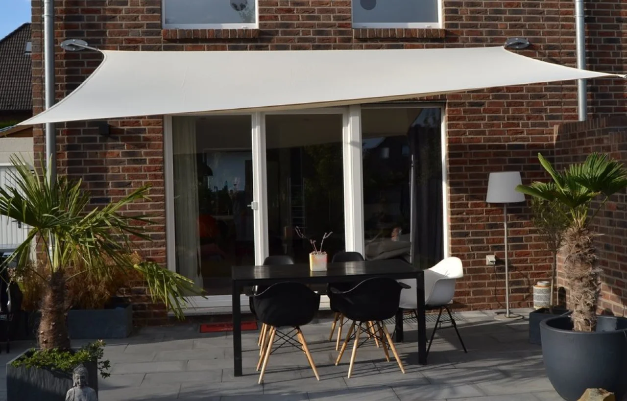 1. Polyester-Sonnensegel als Sonnenschutz und Regenschutz für Terrasse, Gartenterrasse und Garten.