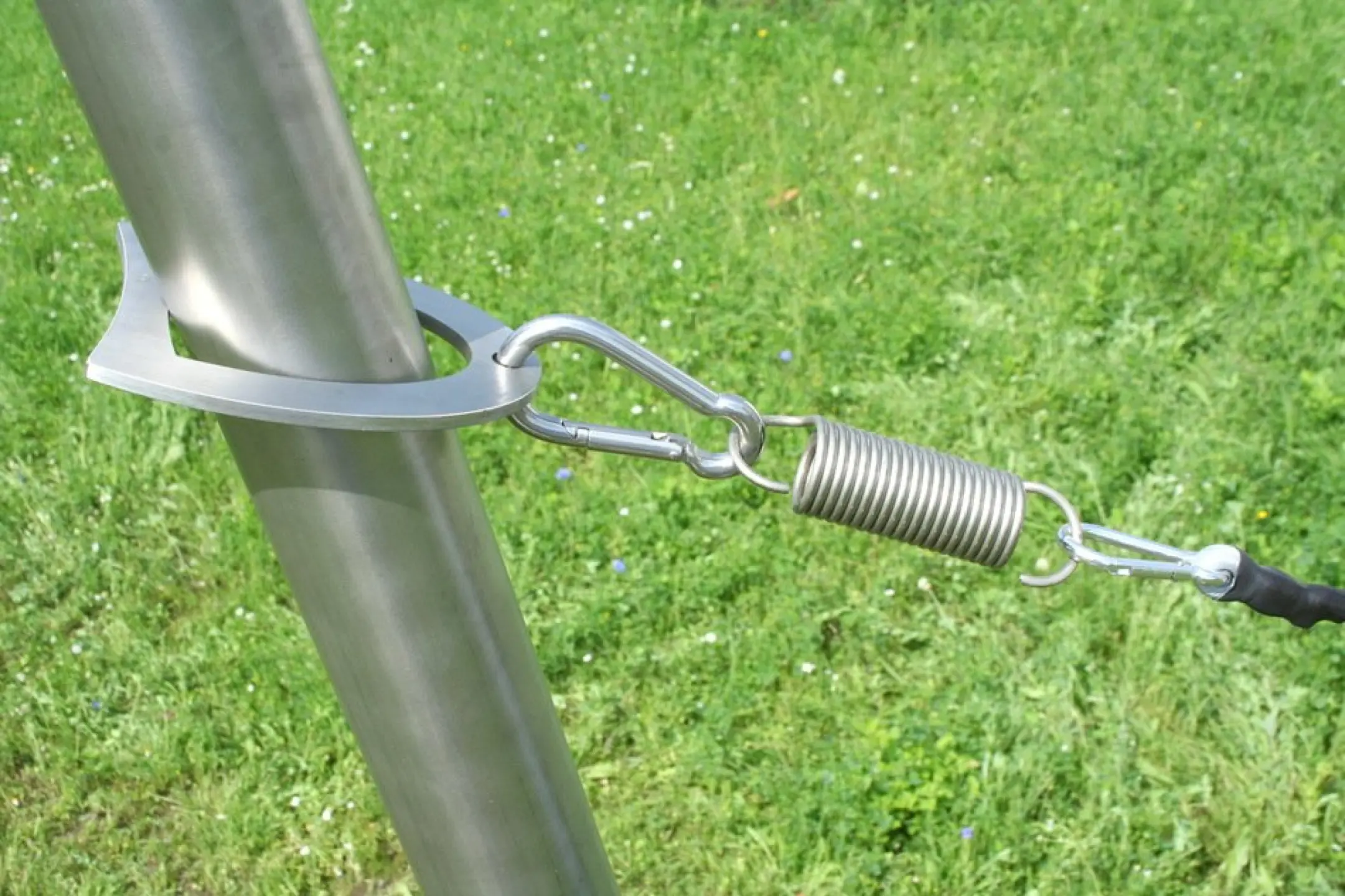 Die dauerelastische Federkraft hält das Sonnensegel glatt gespannt, erhöht die Lebensdauer der Befestigung und sorgt für eine sichere, professionelle Montage.