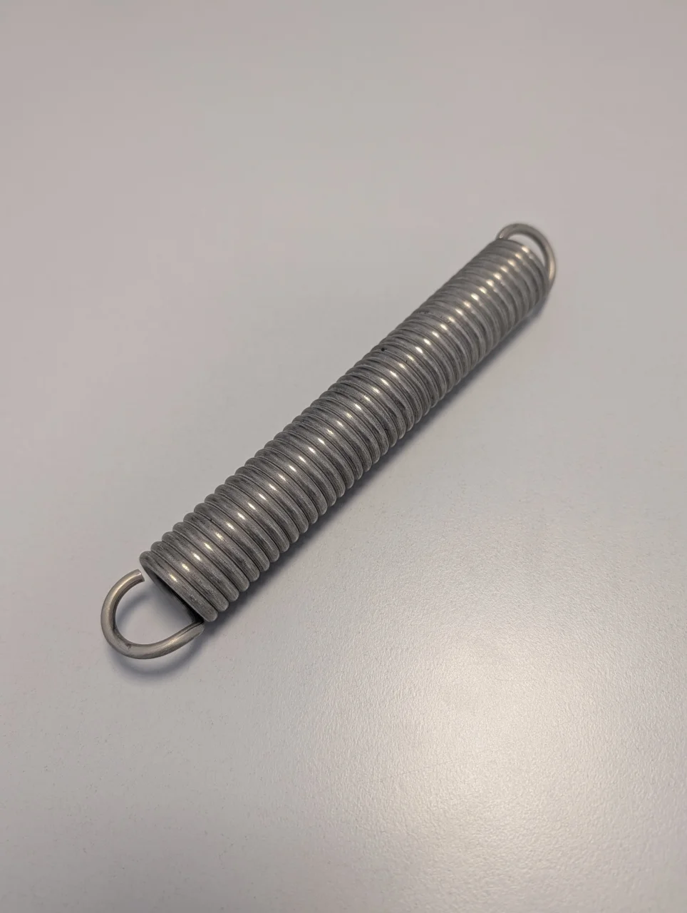 Edelstahl Zugfeder mit einer Grundlänge von 19,6 cm - unter Spannung bis ca. 31,9 cm lang.