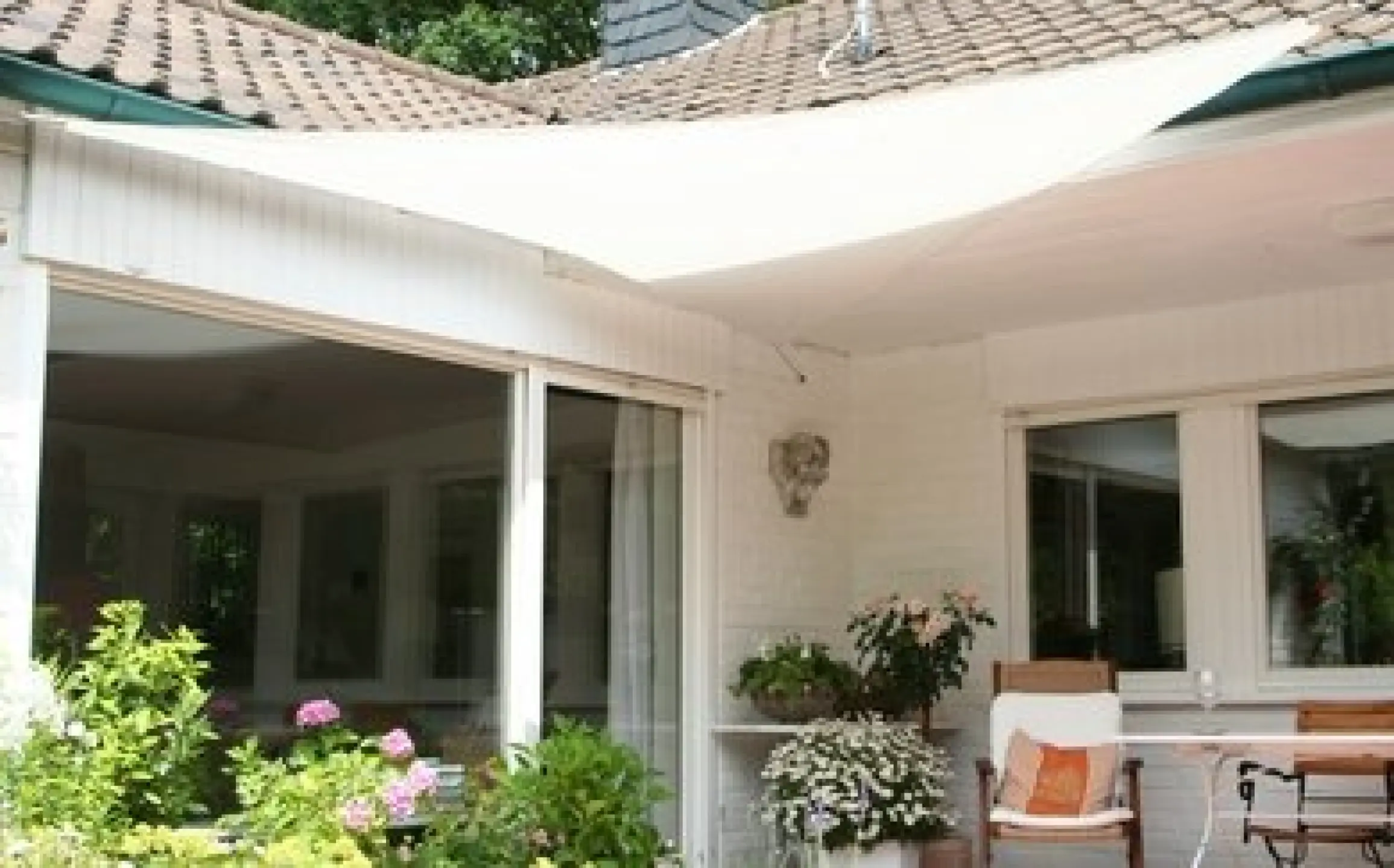 Dreiecksegel mit Seilspanntechnik eine Spezialanwendung für Terrassenbeschattungen