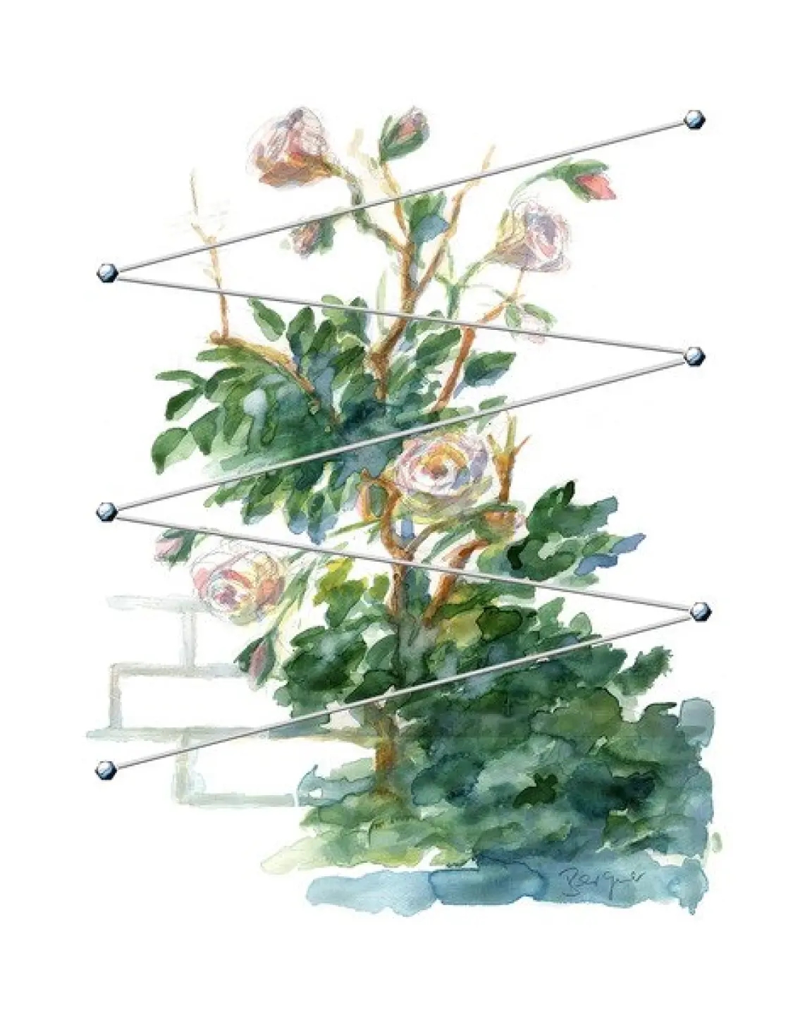 Führen Sie das Edelstahlseil ganz locker über Rosenstamm oder größere Zweige.