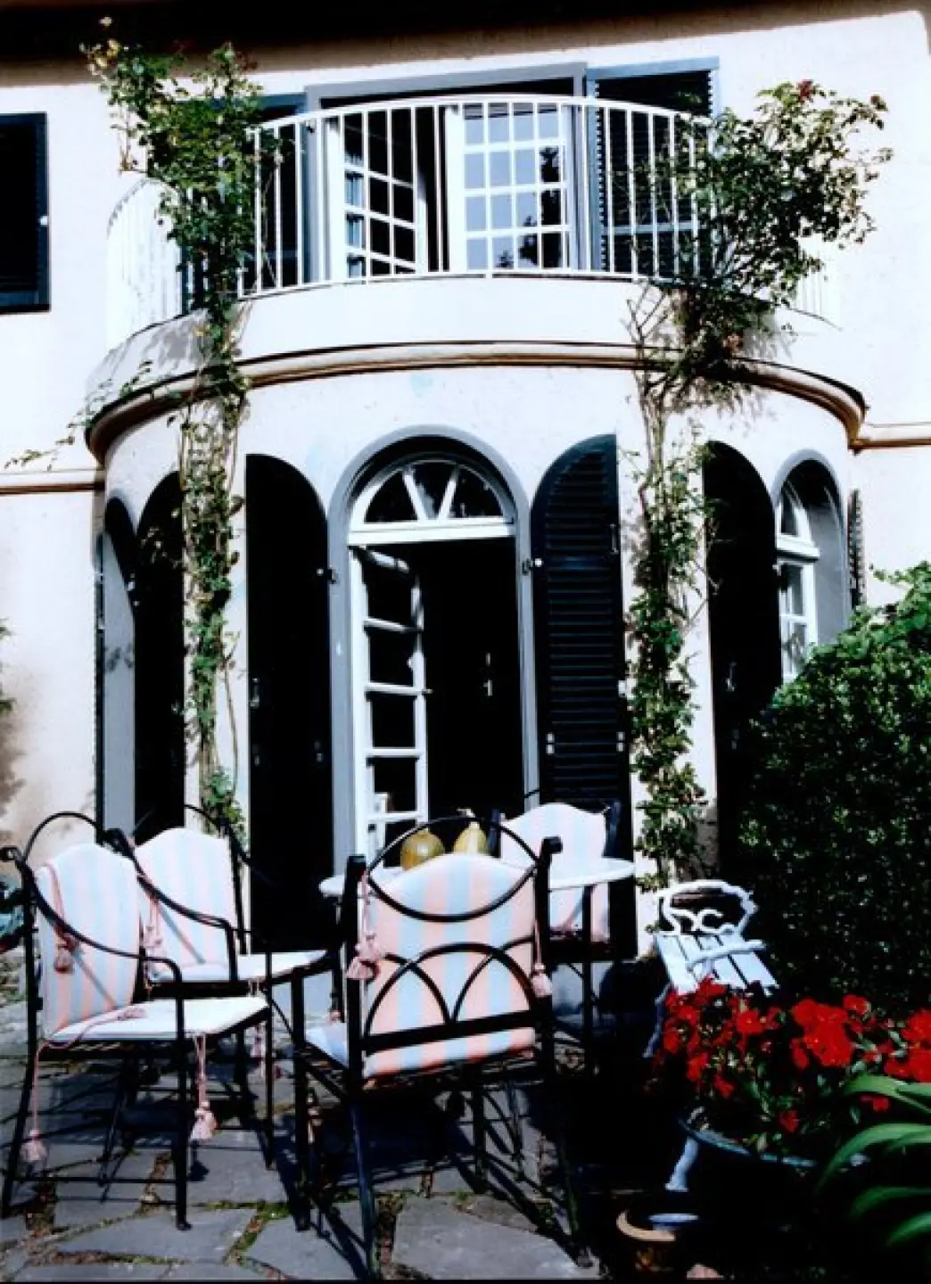 Die Wuchsart mancher Rosen erlaubt es Ihnen, die Richtung der Zweige so über einen größere Wandfläche zu lenken, daß im Sommer große Flächen zauberhaft grün und bunt sind.