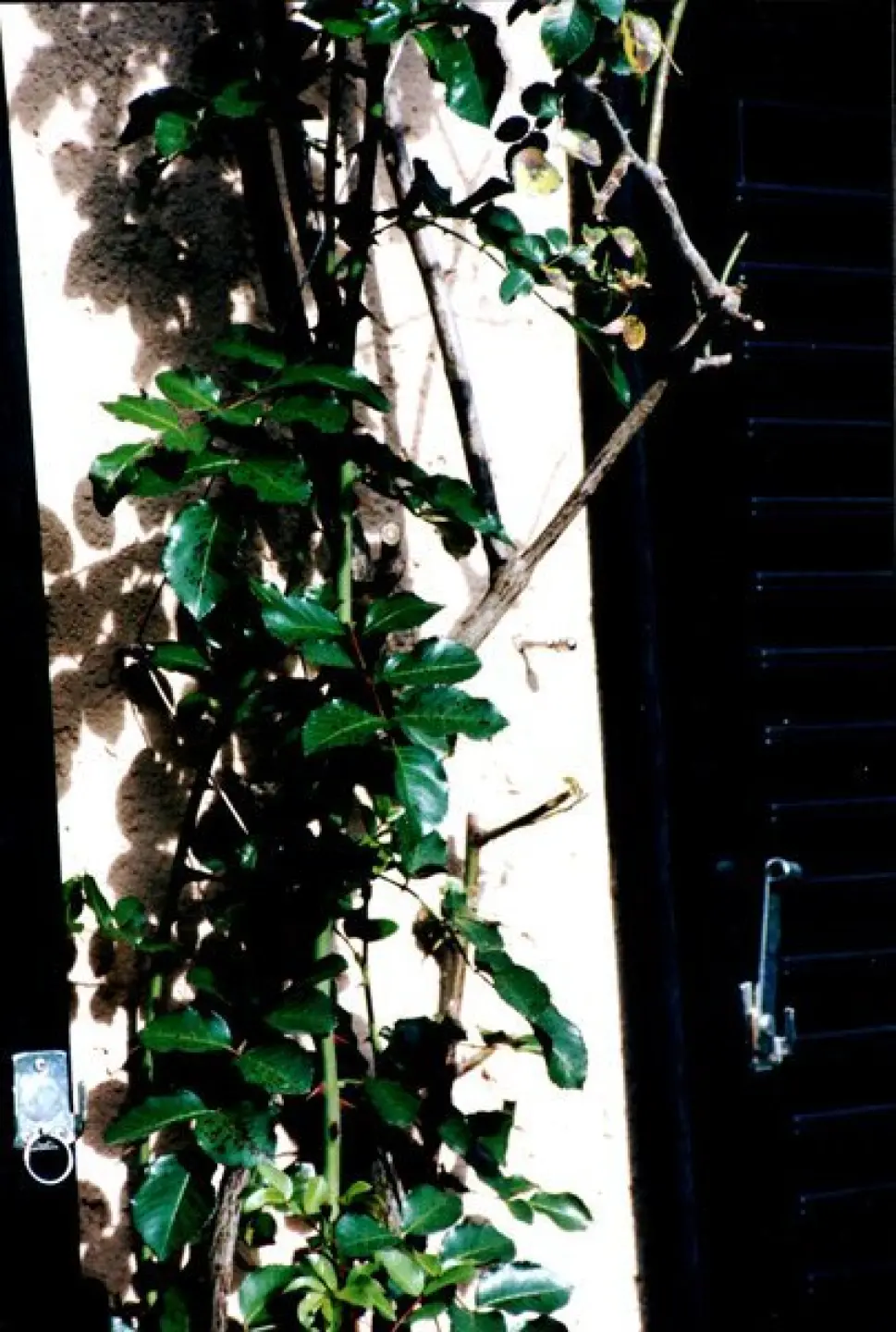 Auf keinen Fall den Rosenstamm oder größere Zweige in Richtung Wand zwingen.