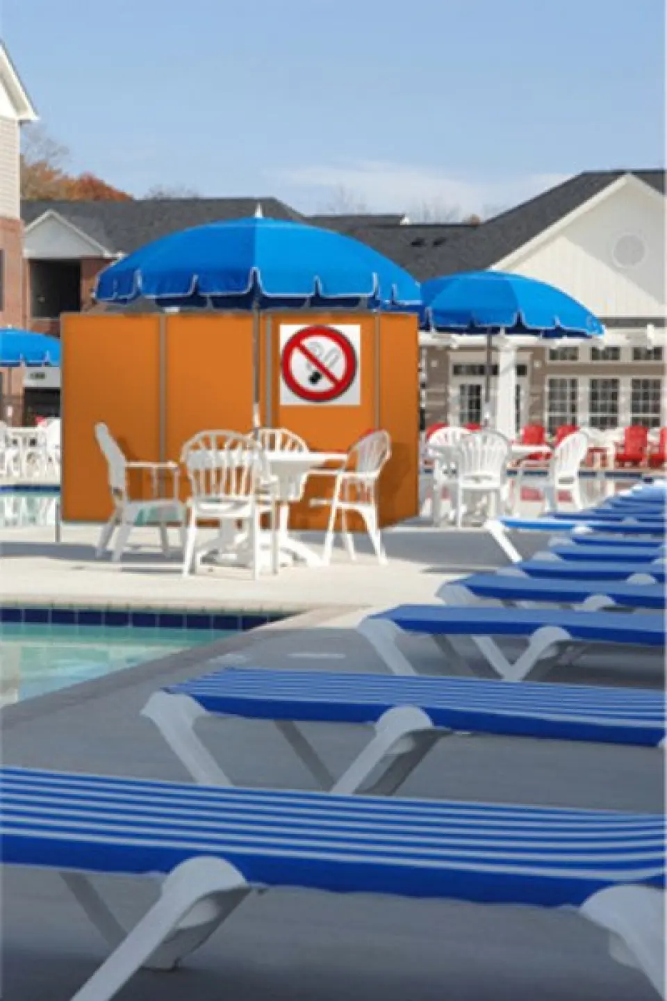 Auch kann unser mobiler Gartensichtschutz vielseitig genutzt werden, z.B. für das schnelle Aufstellen einer provisorischen Umkleidekabine. Für eine standsichere Befestigung an einer Wand werden zweimal 3x-Rahmen benötigt, welche dann eine freie Fläche von 140 x 140 cm mit zwei Türen ergeben. Dabei kann die Umkleidekabine sowohl auf festen Flächen z. B. im Lager, Büro und der Arztpraxis, als auch im Freien auf unbefestigter Fläche aufgestellt werden (z. B. bei Sportveranstaltungen). Wiederum kann die Umkleide als Werbeträger verwendet werden.