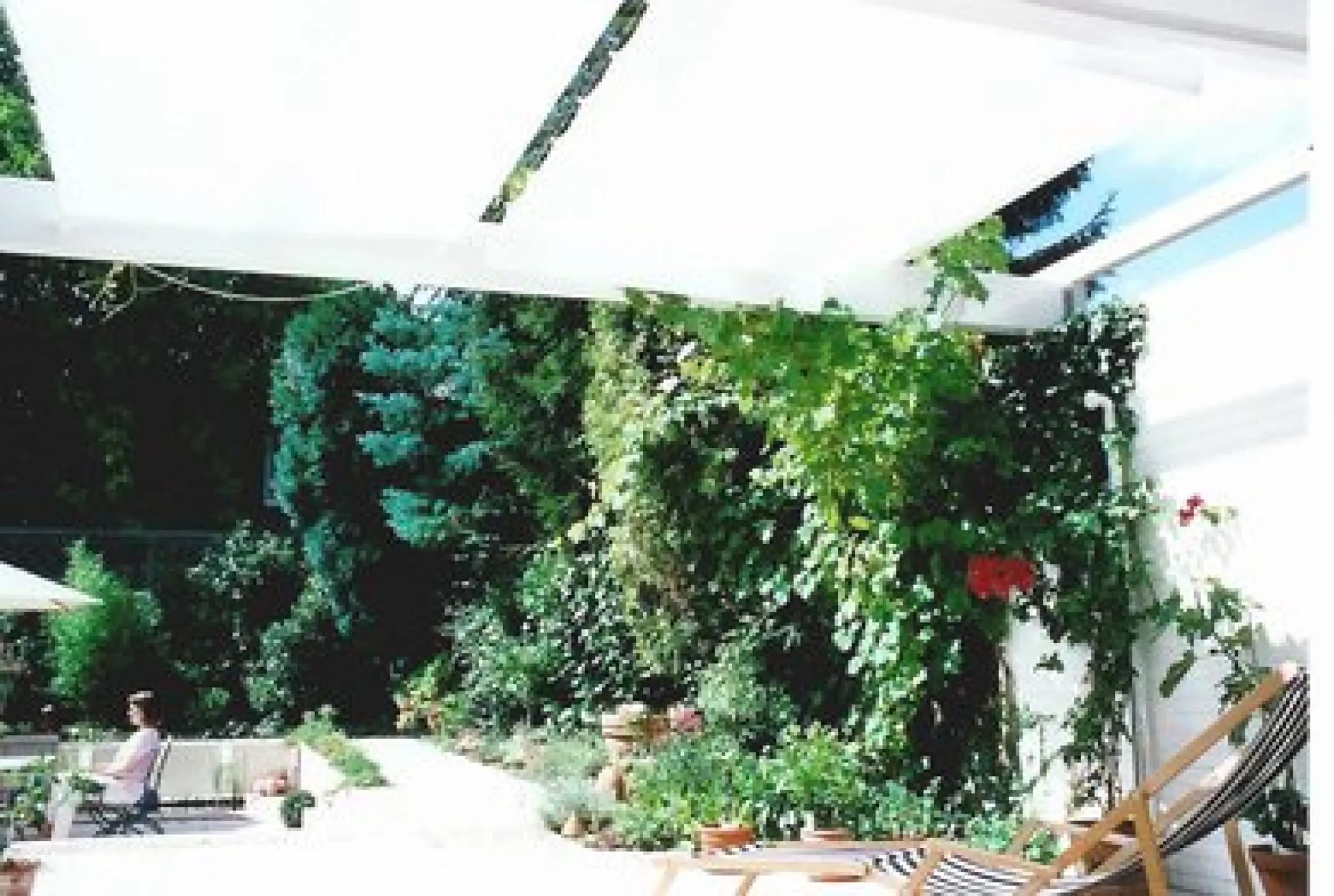 (diese Pergolenkonstruktion mit unseren Sonnensegeln ersetzte eine Großmarkise, die das dahinterliegende Wohnzimmer zu sehr abdunkelte)