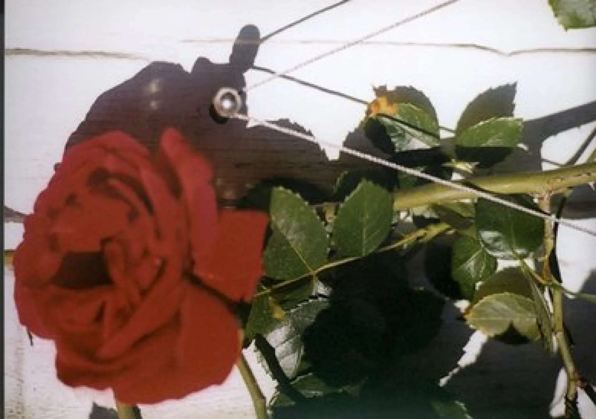 Der Abstand des gespannten Edelstahlseiles von der Wand wird ca. 4 cm betragen, je nachdem wie tief Sie die Doppelschraube Peddy Shield einschrauben. Gärtner halten mit recht den Abstand bei Rosen für zu gering. Deshalb bereits hier unsere Empfehlung bei Rosen. Den Rosenstamm mit dem Edelstahlseil nur ganz locker halten, den stehen tut die Rose auf ihrem Stamm von ganz alleine, sie wollen die Rose doch nur an der Wand sturmsicher halten. Der Autor dieses Kapitels hat selbst erlbt, wie eine gut gewachsene Rose (Schneewittchen) in einem Sturm mit dem ganzen Rankgitte von der Wand gerisen wurde und komplett neu hochgebunden wersden mußte. so was kann Ihnen mit der Rankhilfe in Seilspanntechnik von Peddy Shield nie passieren.