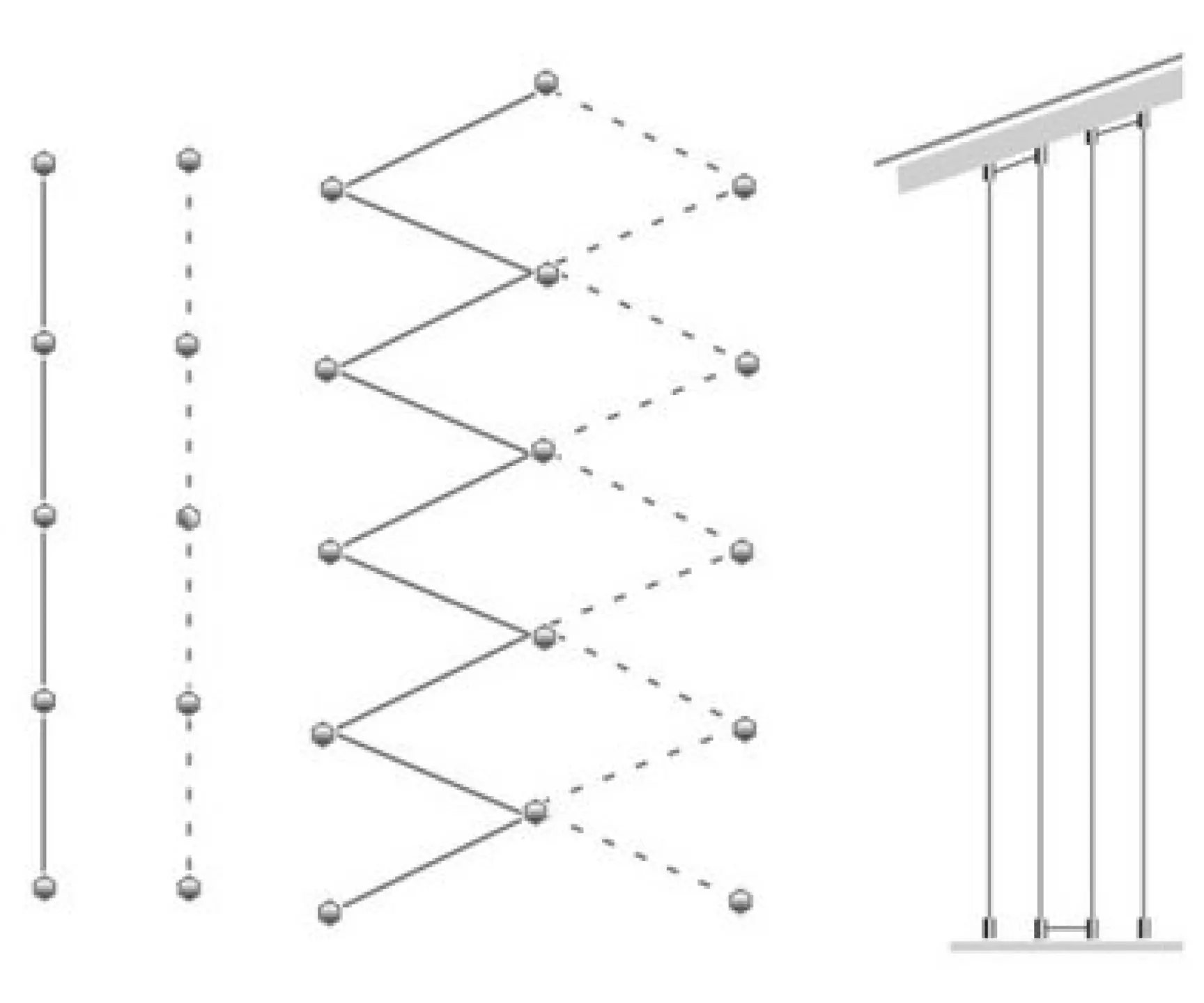 Die Einzelteile von einem Set Rankhilfe in Seilspanntechnik aus Edelstahl.