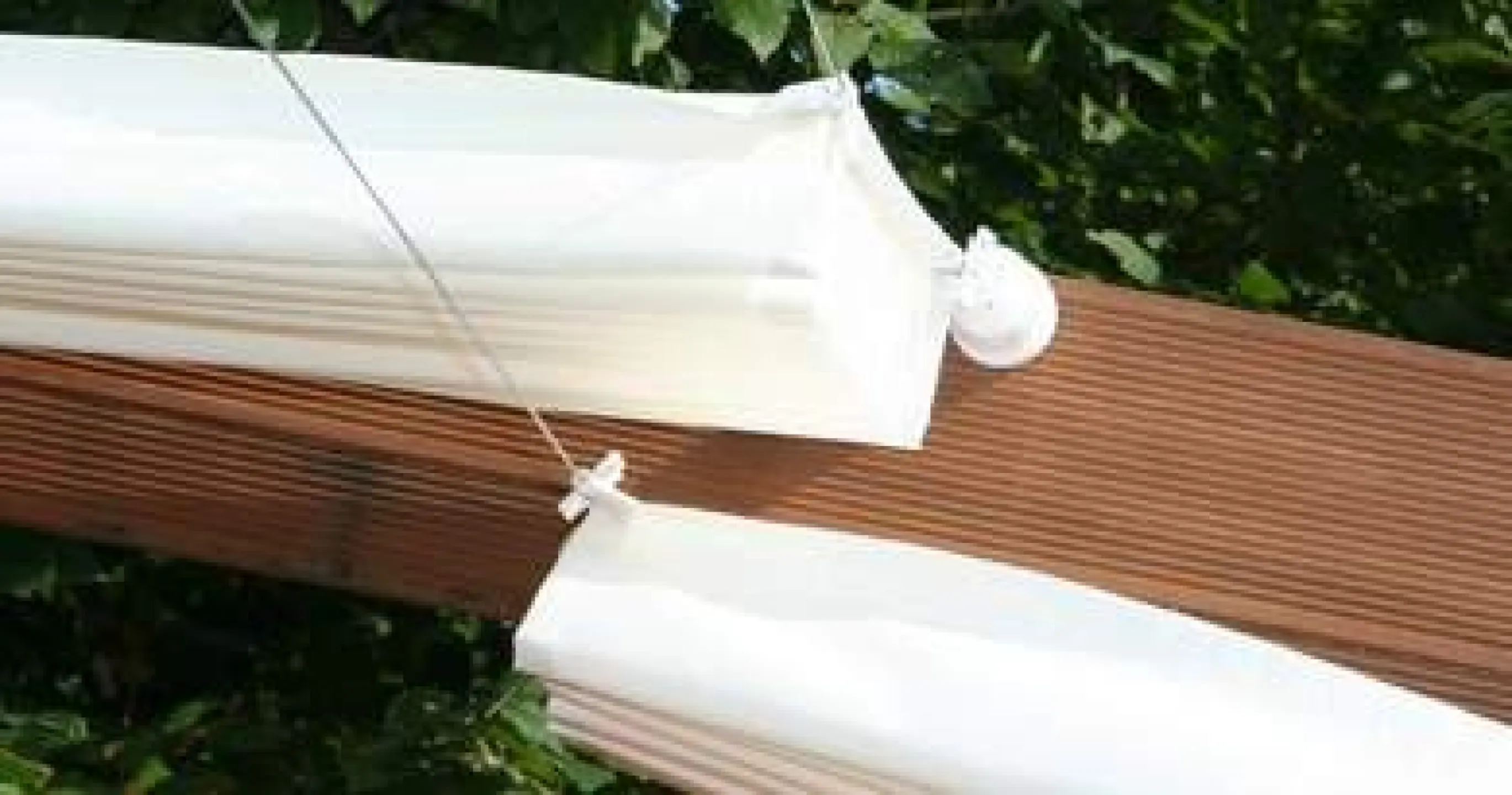 das obere Sonnensegel bewegen Sie sinnvollerweise mit unserem dafür entwickelten Seilzugsystem