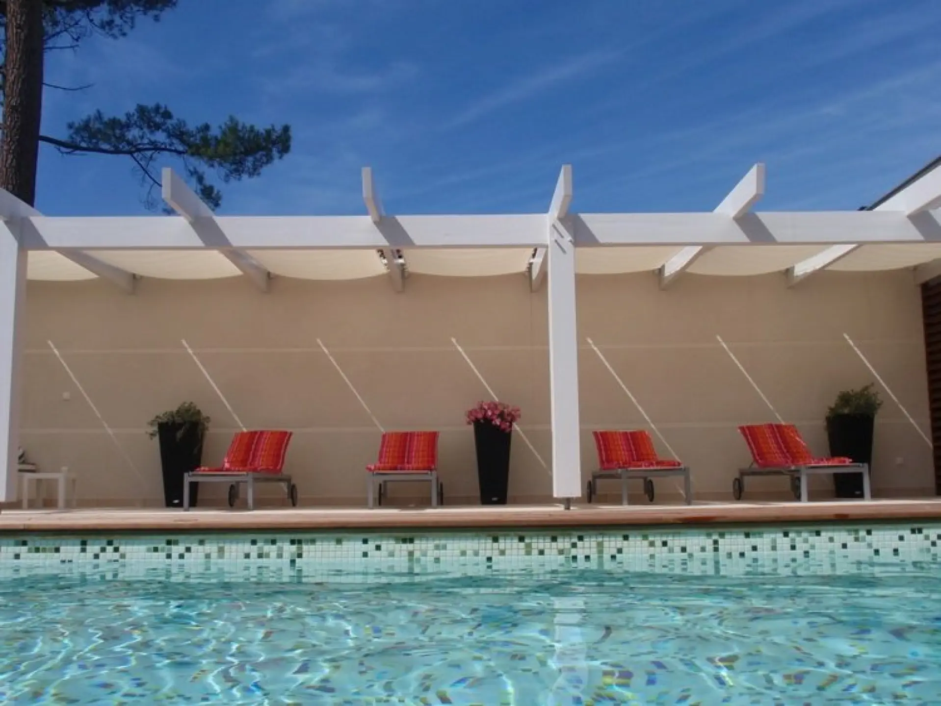 Ein Sonnenschutz am Schwimmbad im Garten oder Freizeitanlagen ist absolut notwendig, wird aber nur wenige Wochen im Jahr gebraucht.