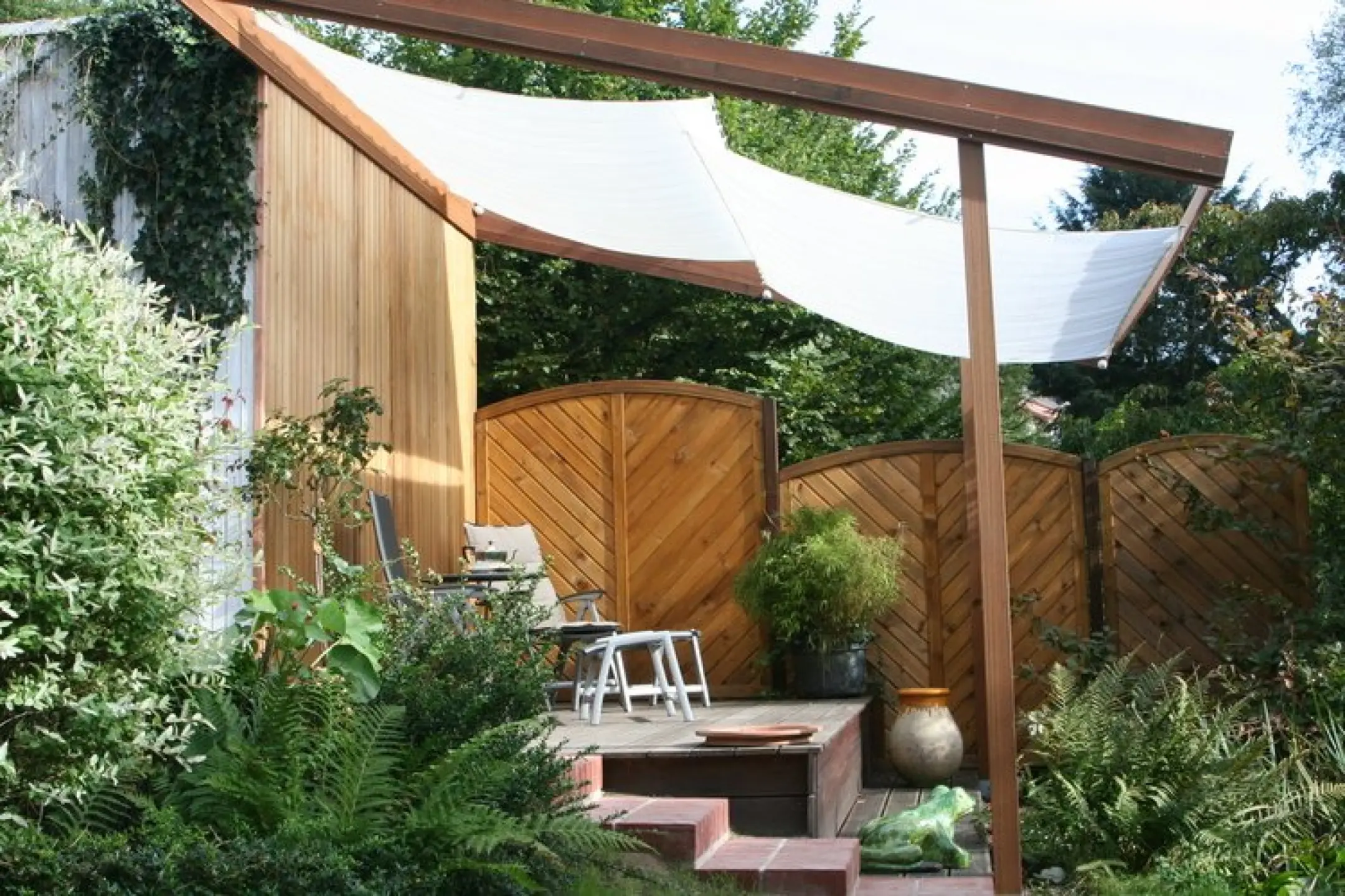 Einen wirklich praktischen, preiswerten und pflegeleichten Sonnenschutz bieten Sonnensegel in Seilspanntechnik - das ist vor allem schnell gemacht und schön mit einer Unterkontruktion - bei Bedarf schnell aufgehängt und am Abend zusammengeschoben