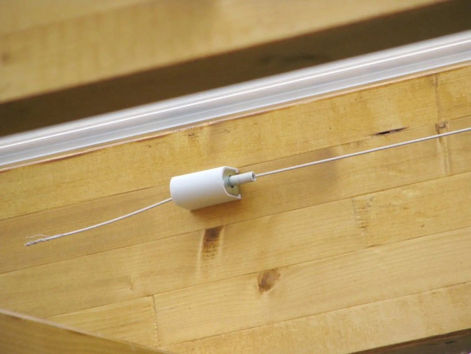- diese Seilspanntechnik ist so klein wie keine andere - ist unauffällig, nimmt nur ganz wenig Platz weg und spannt die Edelstahlseile dicht am Sparren, so daß nur ein kleine Lichtspalt bleibt - steht die Sonne schräg, scheint sie gegen die Sparren und stört nicht